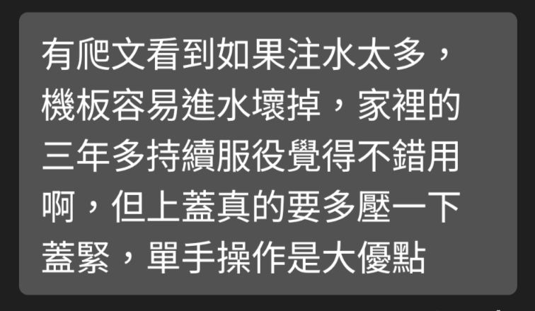推 an10302 : 有沒有可能是進水量太多?我都固定用量杯量60-70cc 03/16 08:55