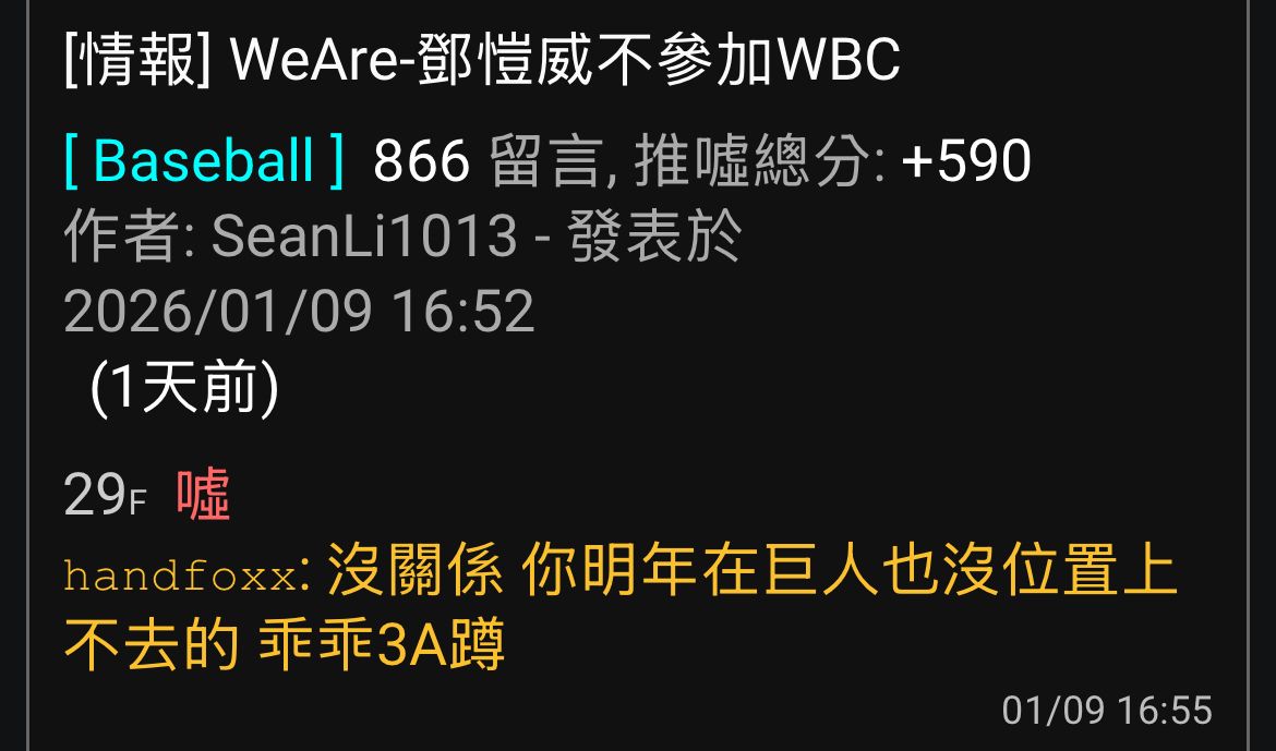 → KK22440000: 這條是有罰則的喔 看你聯盟要不要處理 01/10 11:10