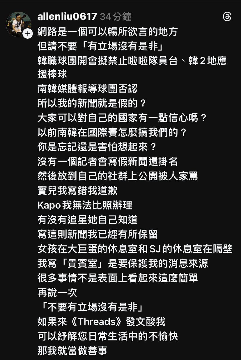 推 PeterHenson: 對啦對啦 都是南韓球團要攻擊你劉大記者對吧 01/31 22:28