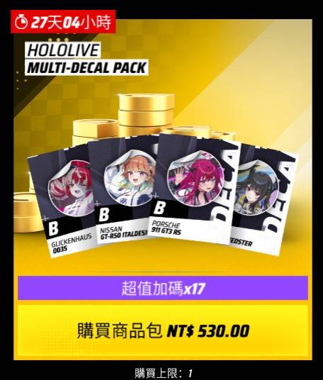→ lime1207: 不過目前遊戲內也沒顯示我我有領到hololive的貼花,而且 10/17 11:46