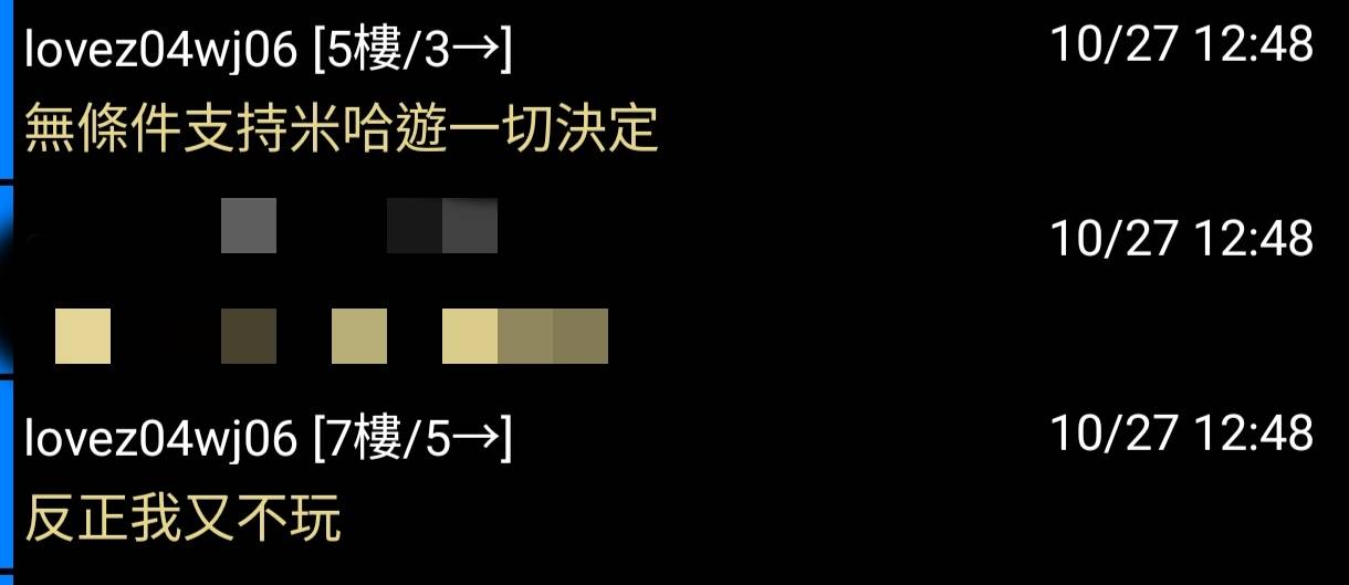 → wrh810701: 講真的這邊討論米遊類的常見的就那幾個新來ID超顯眼 10/27 16:20