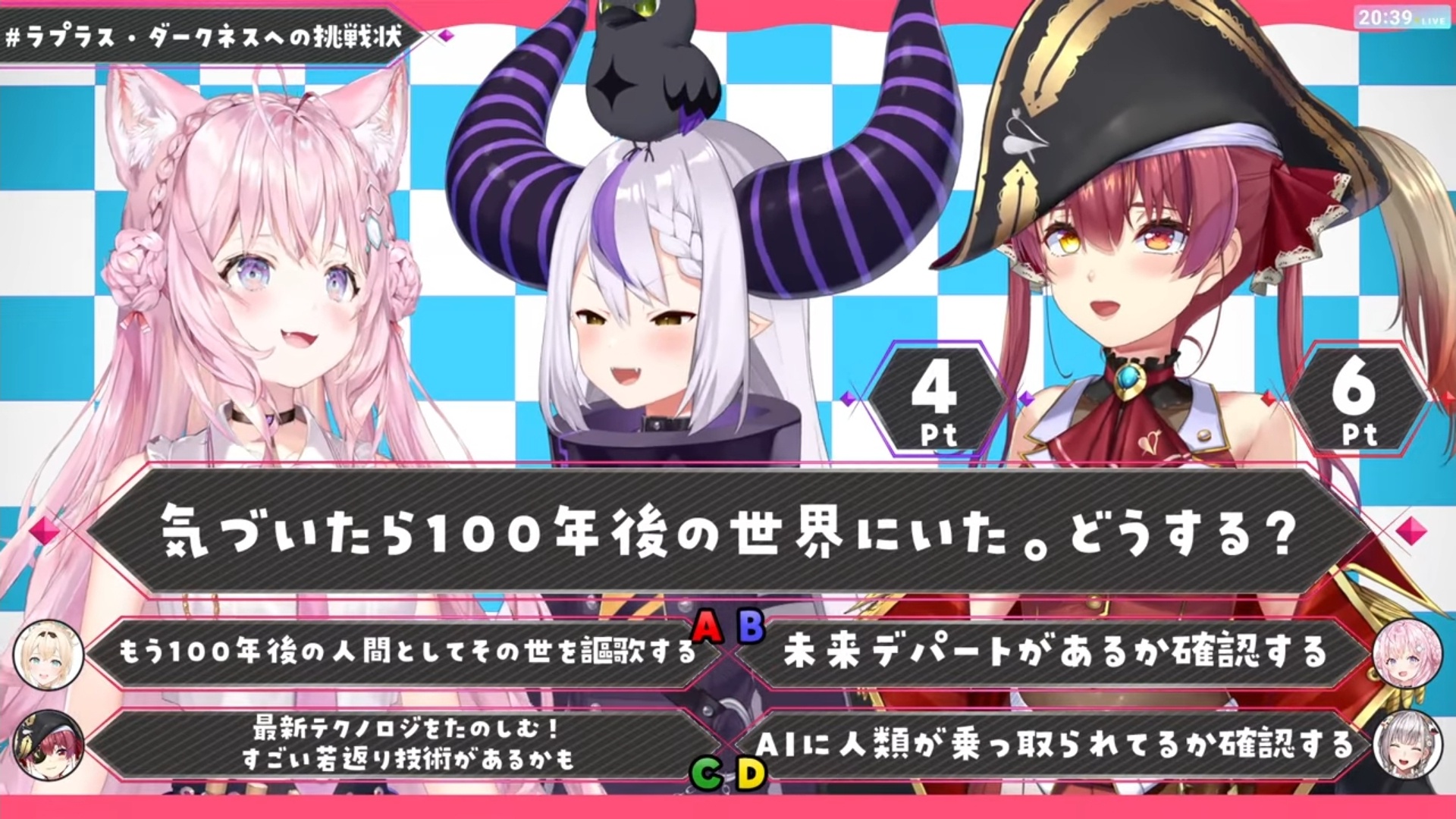 → Pekora2022: a 哈利 b? c:飯好吃的地方 d hololive alternative 11/21 20:52