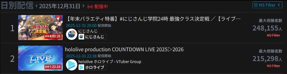 → blueshya: 他這個是昨天日本時間12點時的總同接,所以holo是同時視 01/01 17:26