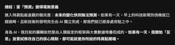 → ThreekRoger: 我覺得ai有辦法研究出人類還不會的研究才叫奇點,比 01/05 16:47