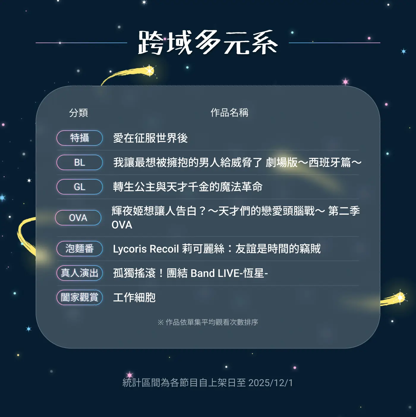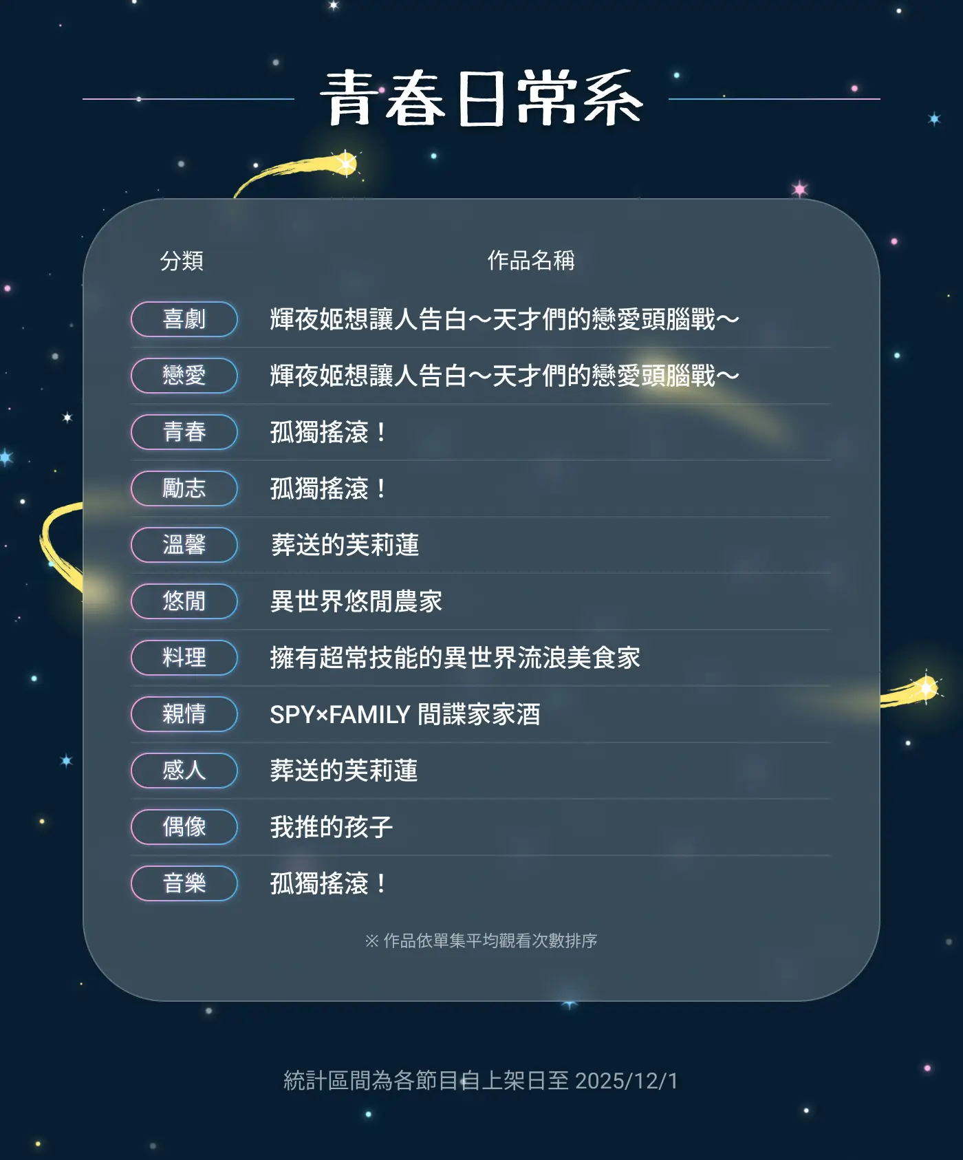 推 sealwow: 男女比蠻合理的吧,動畫瘋算是很中性的視聽平台了 01/06 23:20