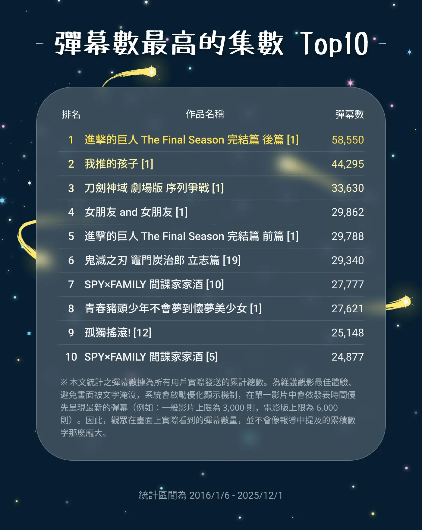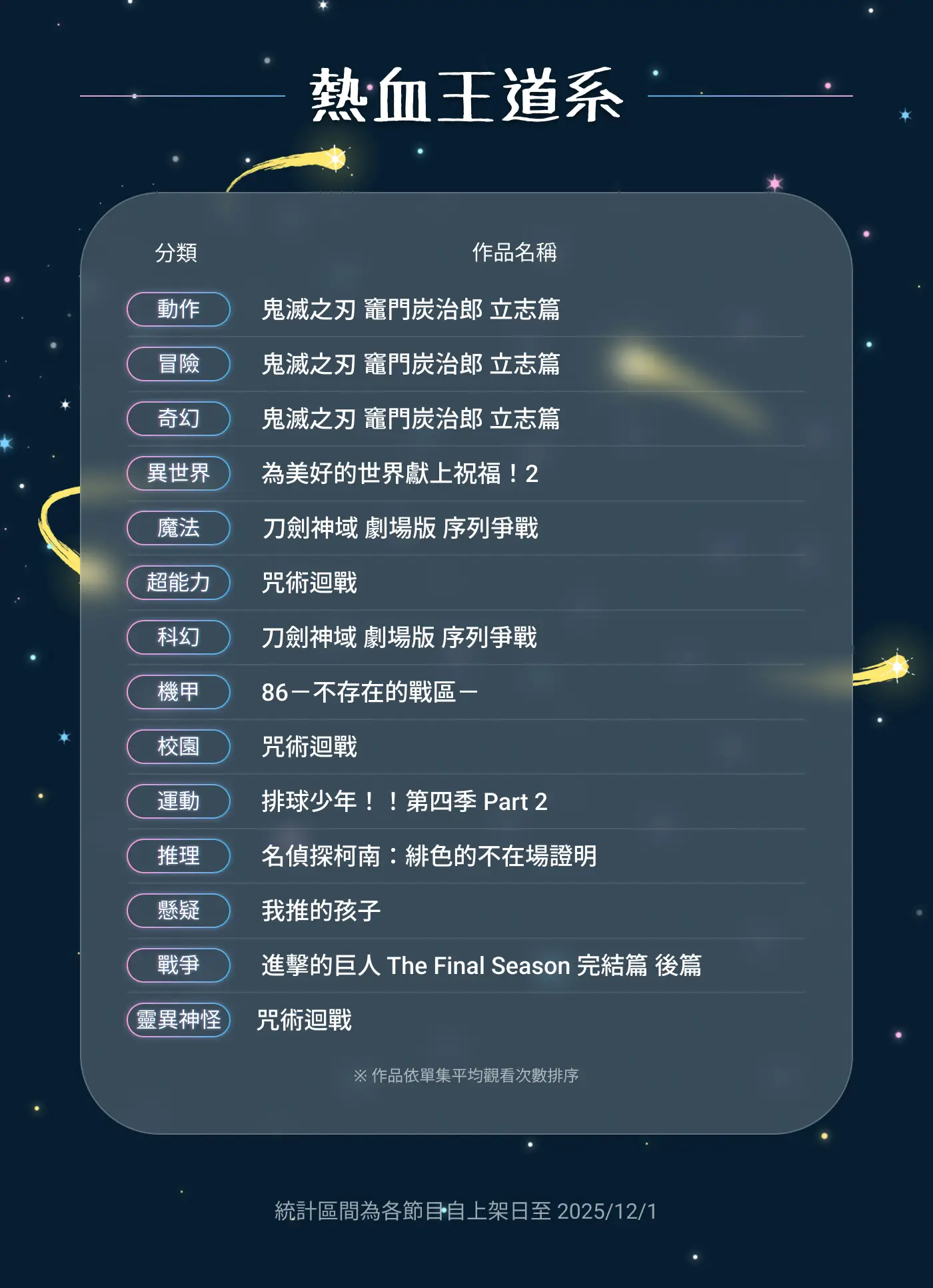 → kerorok66: 巨人完結篇 刀劍劇場版都是單部 不會被拉低平均 跟其他 01/07 00:26
