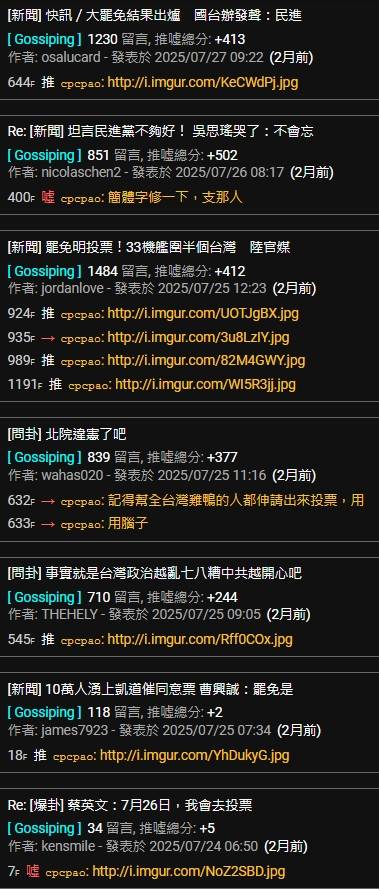 → Calcifer: 党在群組還在公開要甩鍋給公所人員,噁223.141.221.147 09/25 14:54