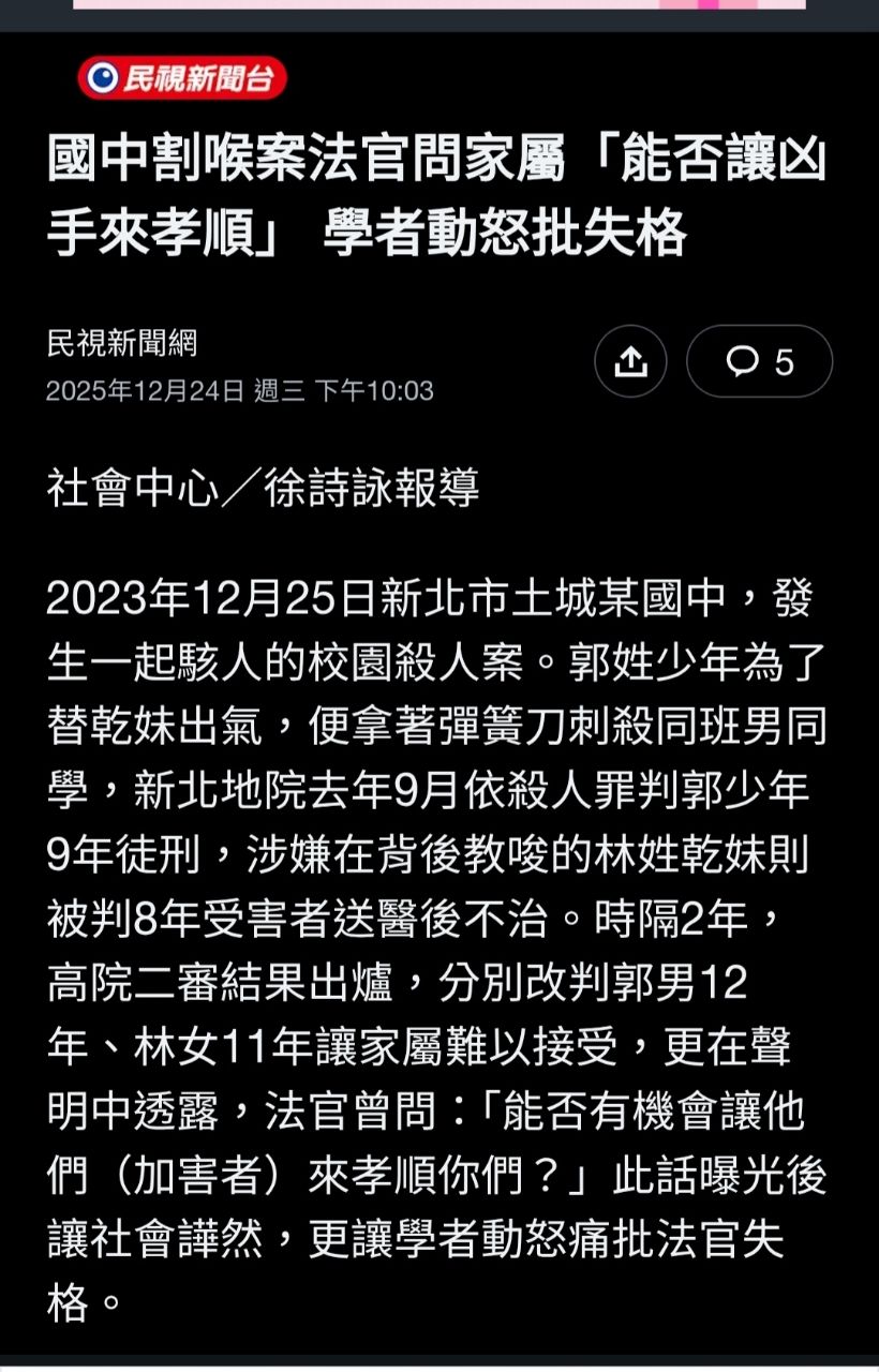 噓 Mradult: 果然是修復式司法在搞,台灣就愛速成 114.26.153.249 12/27 08:55