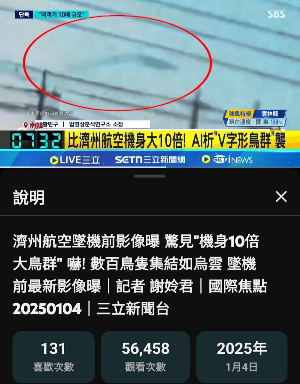 推 t4lin: 標題以為高空撞,結果是5萬鳥鳥在跑道開趴 106.104.69.227 01/11 22:16