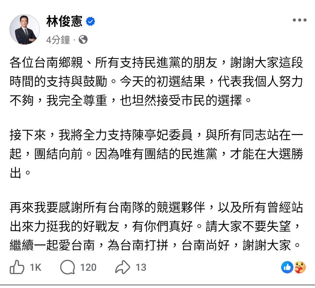 推 yw1002: 直接宣布當選新任台南市長了 118.166.155.74 01/15 11:15