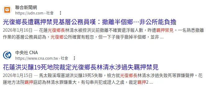 → pttuser0280: 結果光復鄉長被羈押 118.168.176.24 01/26 13:59