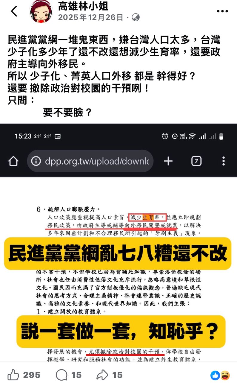 推 tamynumber1: 民進黨少子化還在輸出 114.137.190.17 02/10 17:08