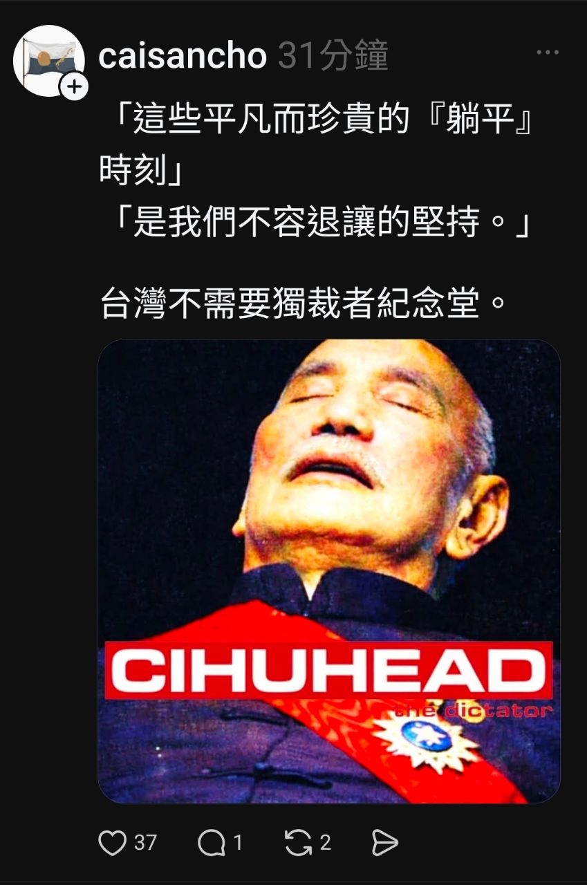 → theskyofblue: 不是最近T型加蔣公的梗還蠻紅的嗎 49.218.143.134 04/05 14:29