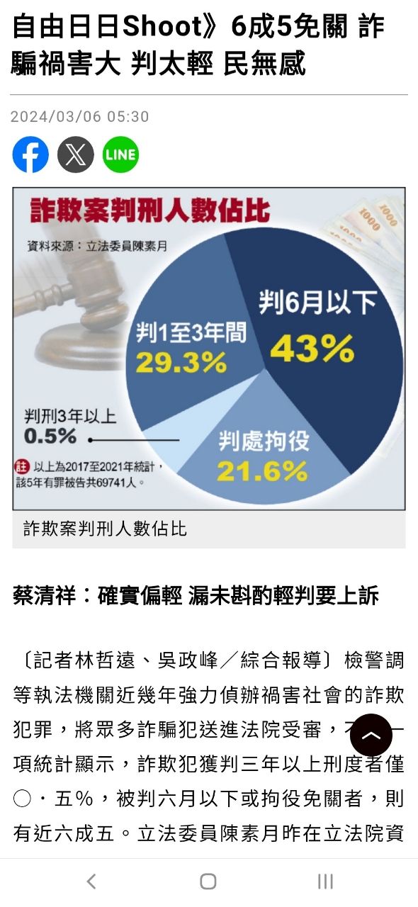 推 coffee112: 台灣詐騙嚴重 司法還輕判被認證過 101.9.99.10 04/12 15:34