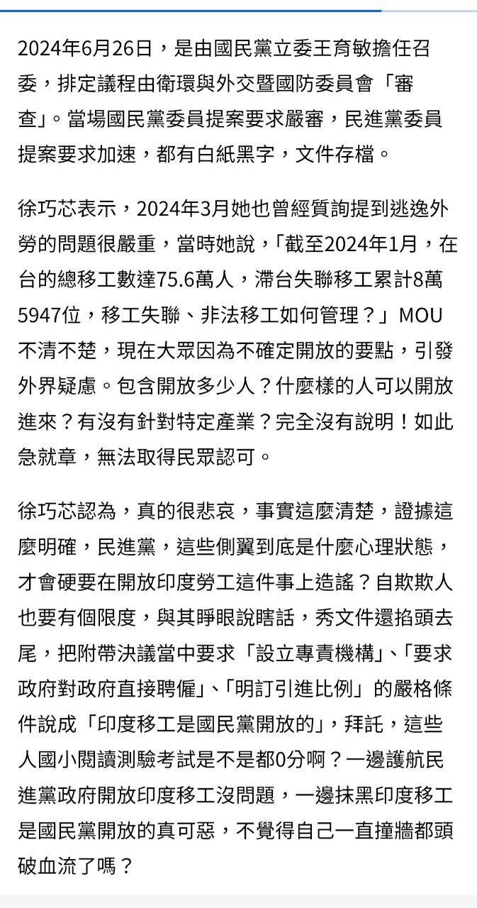 → zingy: 引進移工是行政院的權力,不是立法院。116.118.152.130 04/13 00:18