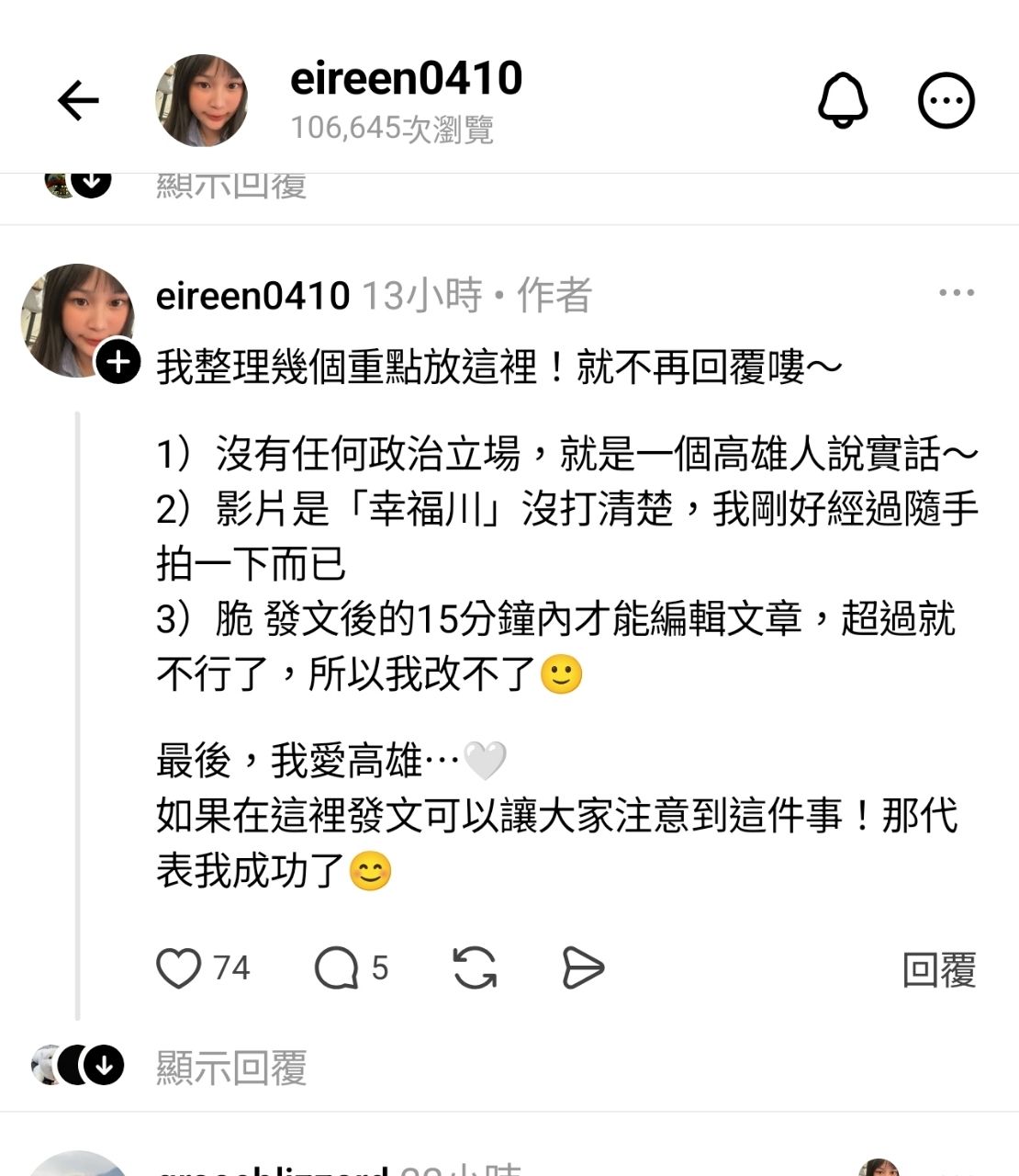 → ss88812: 沒政治立場看愛河本來就常有味道好嗎 36.224.101.225 04/16 00:23