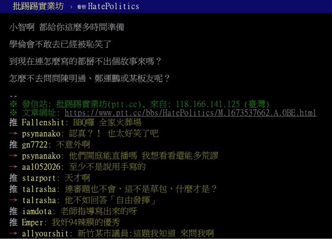 推 andy279279: 論文案就是垃圾民進黨看學術界沒有 218.164.13.202 04/19 14:45