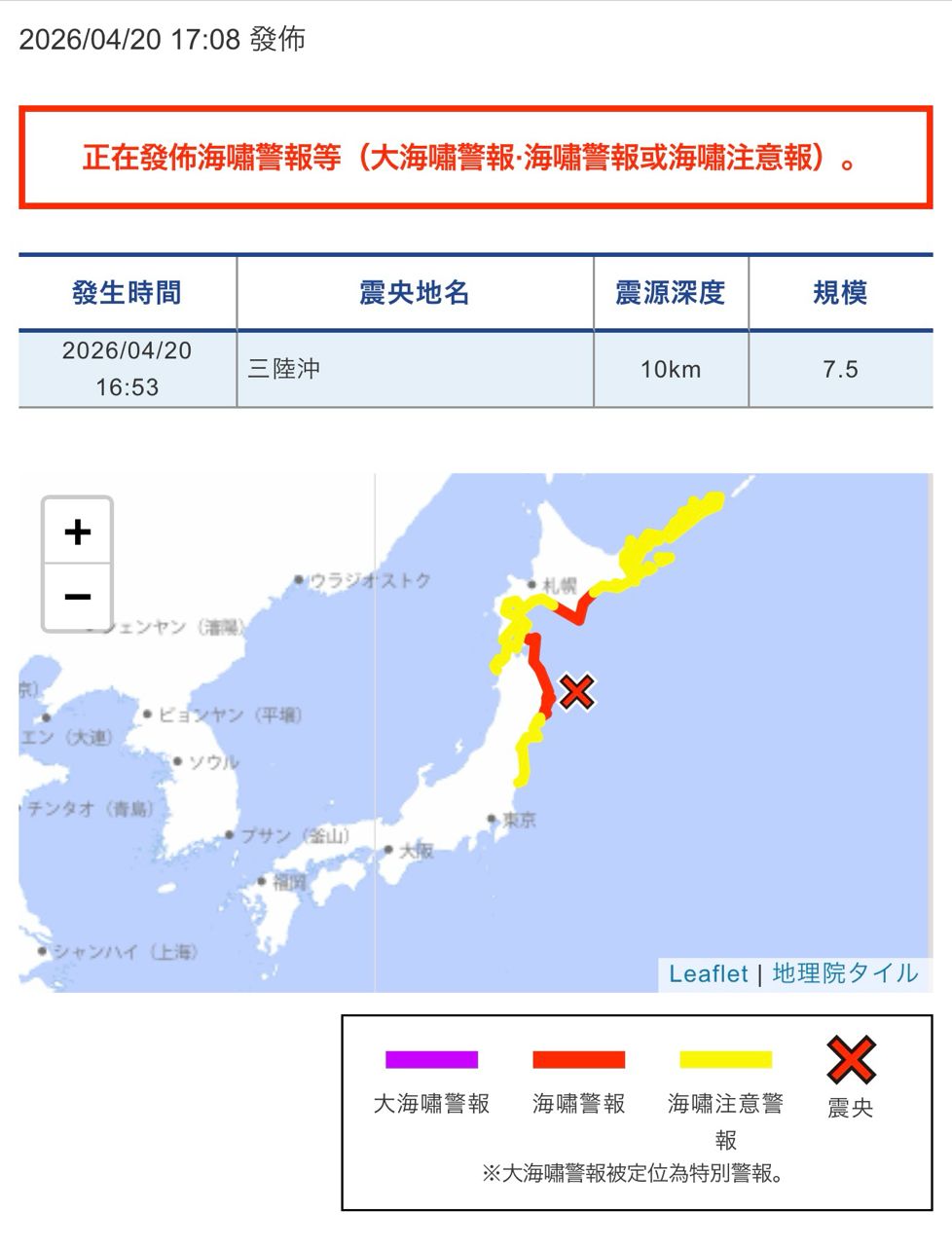 推 bbc0217: 欸 好像滿嚴重的 已經確定有海嘯 61.223.82.97 04/20 16:42