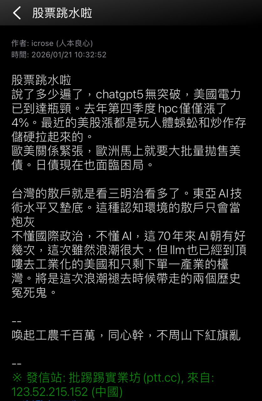 → kterry01: 股版神靈,懂的都懂 1.162.193.112 01/22 10:26