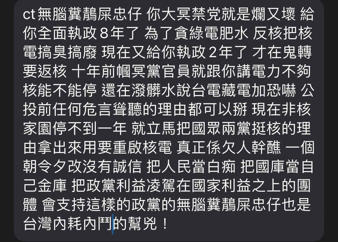 → dodomessage: 停掉核電的是賴清德」最該為核能政 36.231.7.5 03/22 13:25