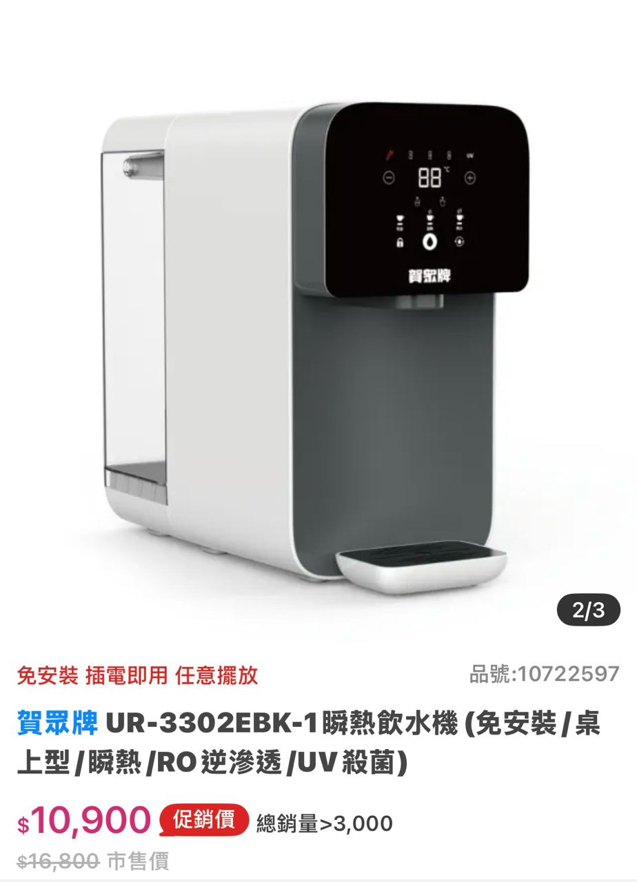推 gdp10 : [售]賀眾牌桌上型瞬熱式RO飲水機,$5000,2024年 12/12 21:23