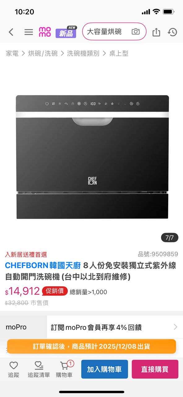 推 GoodQ : 售 美寧洗碗機 => 突然不能開機 目前無法使用 12/03 11:31