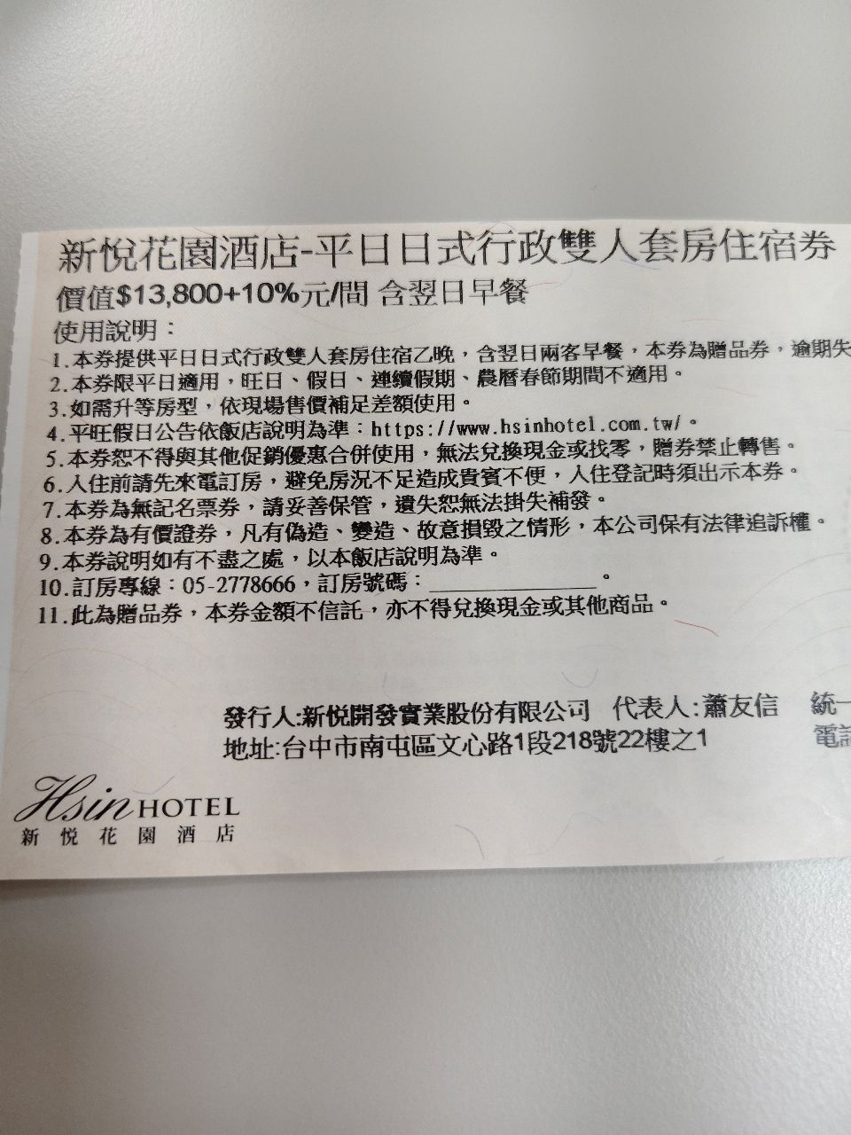 推 eric0626: [售]新悅花園酒店,平日日式行政雙人房,5200元,使 03/13 09:43