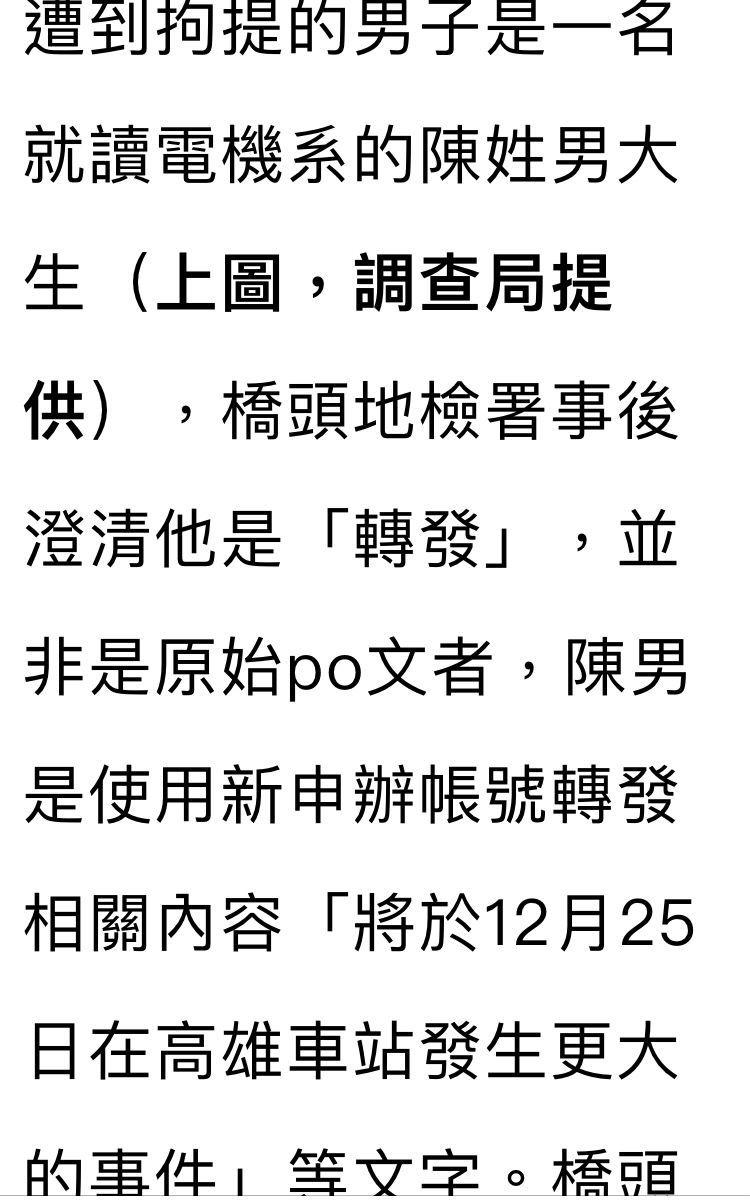→ q2825842: 言論自由,但恐嚇要在高雄車站犯案可不是言論自由保障 12/21 11:31