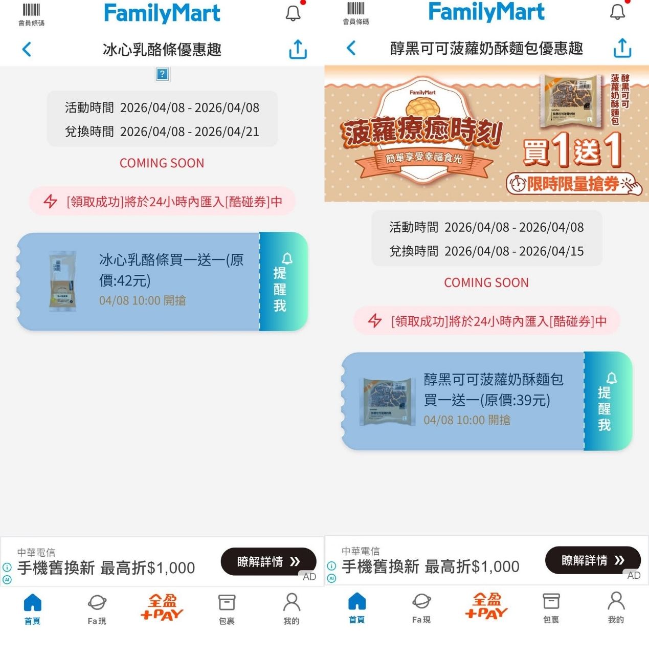 → marlonlai: 兌換是到4/14 那個1天是指只有今天能領 1.161.127.34 04/10 11:12