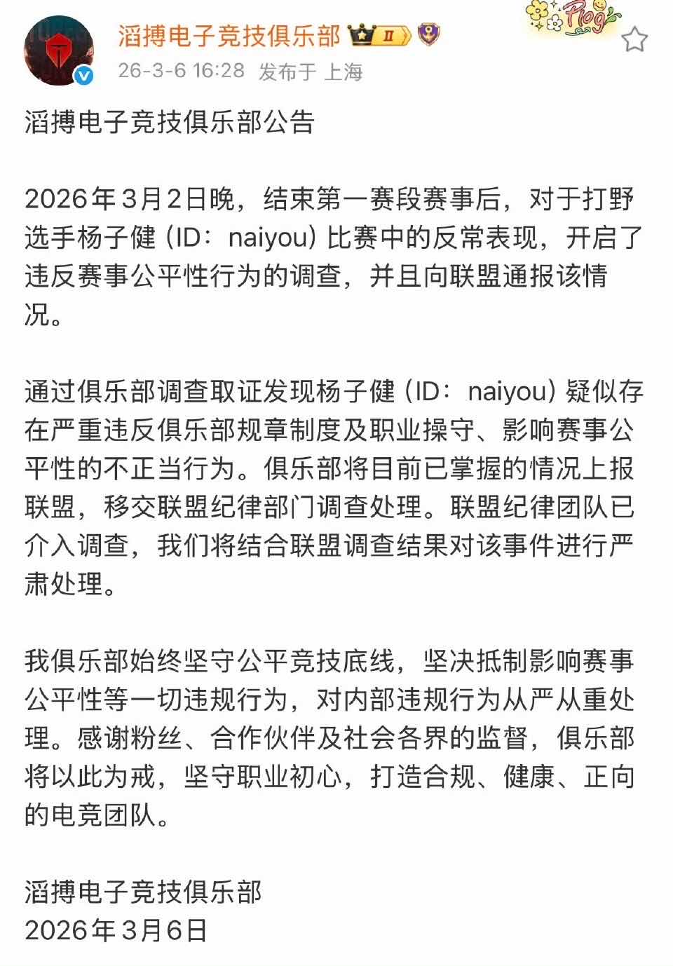 推 nokumakun : 如果是真的 以後可以叫LPL假賽賽區了嗎 03/06 17:49