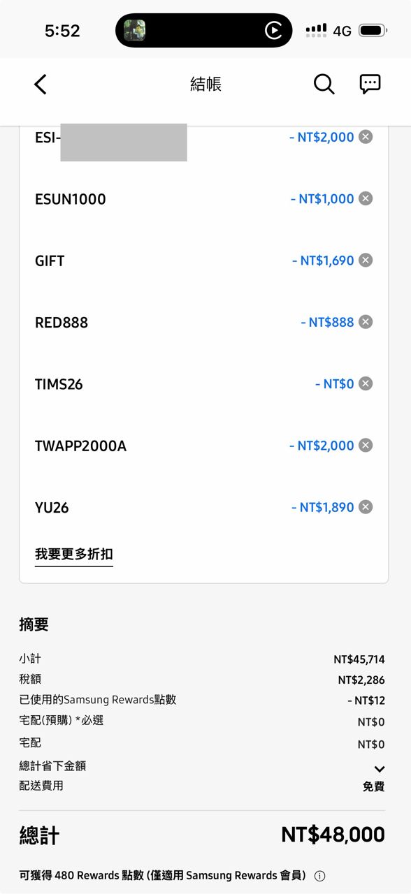 → horacez : TWAPP2000A不能和Samsung點數一起折抵 03/04 17:46