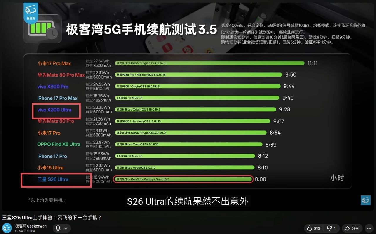 → kisia : 有人做S26雙版本對比了 續航差到2個半小時 03/30 00:12