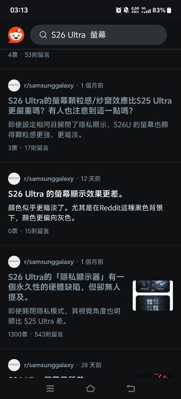 → p40403 : 於S26螢幕討論?螢幕這種本來就是主觀性的,三星蘋 04/10 03:21