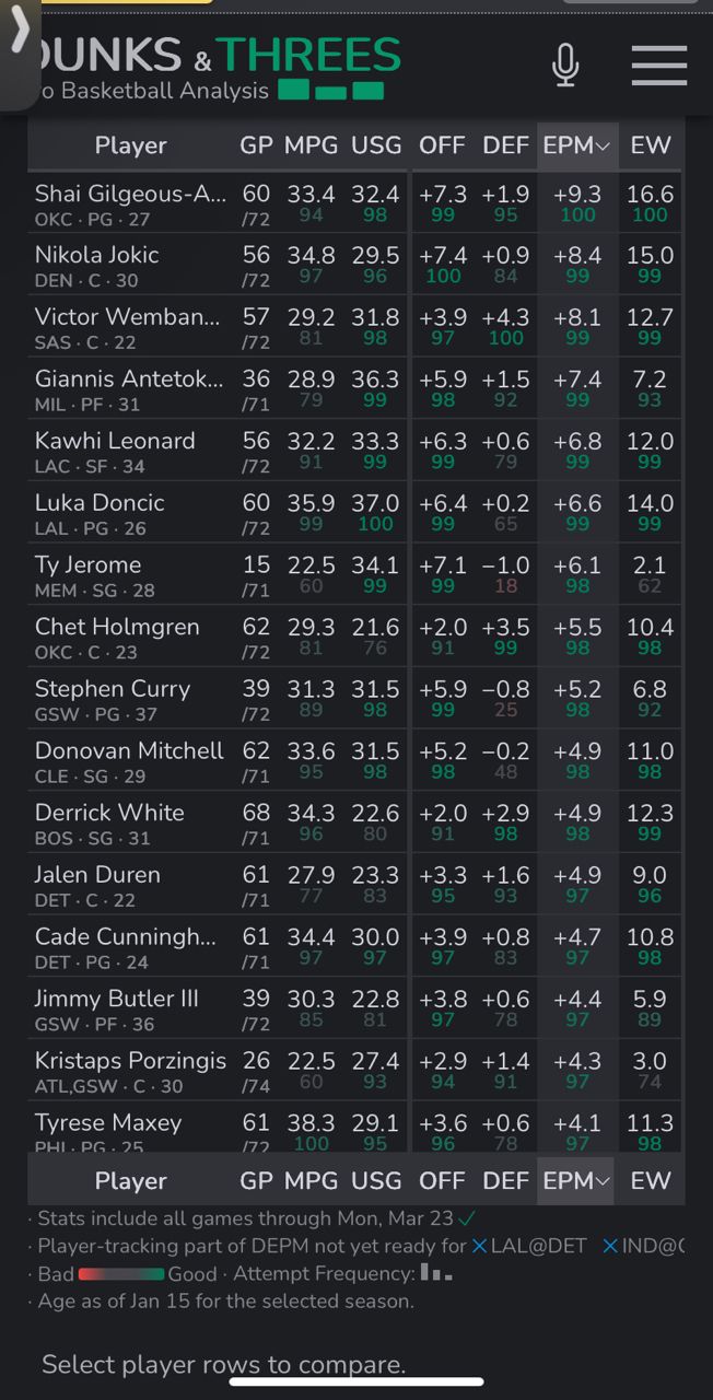 推 roger2623900: SGA缺賽+5.1 斑馬缺賽+3.8 77缺賽-12.7 隊友差距太 03/24 16:56