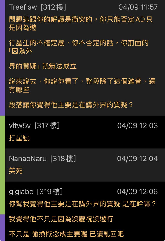 → Treeflaw : AD自述的一整段都沒有在講外界的質疑,都是在講覺得 04/09 13:50