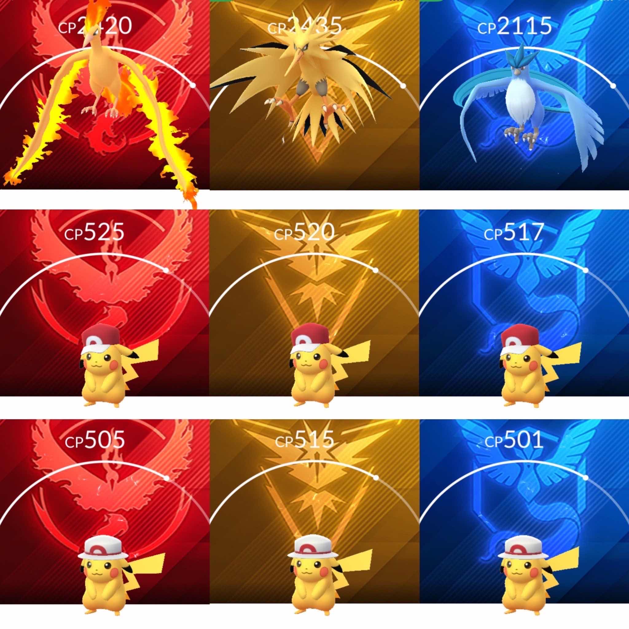 團體戰中首先登場的是「戴著明輝帽子的皮卡丘」、「戴著小光帽子的皮卡