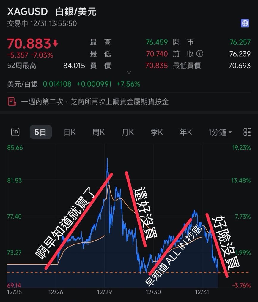 推 jelly70 : 貴金屬這個跳水曲線真帥 12/31 13:59