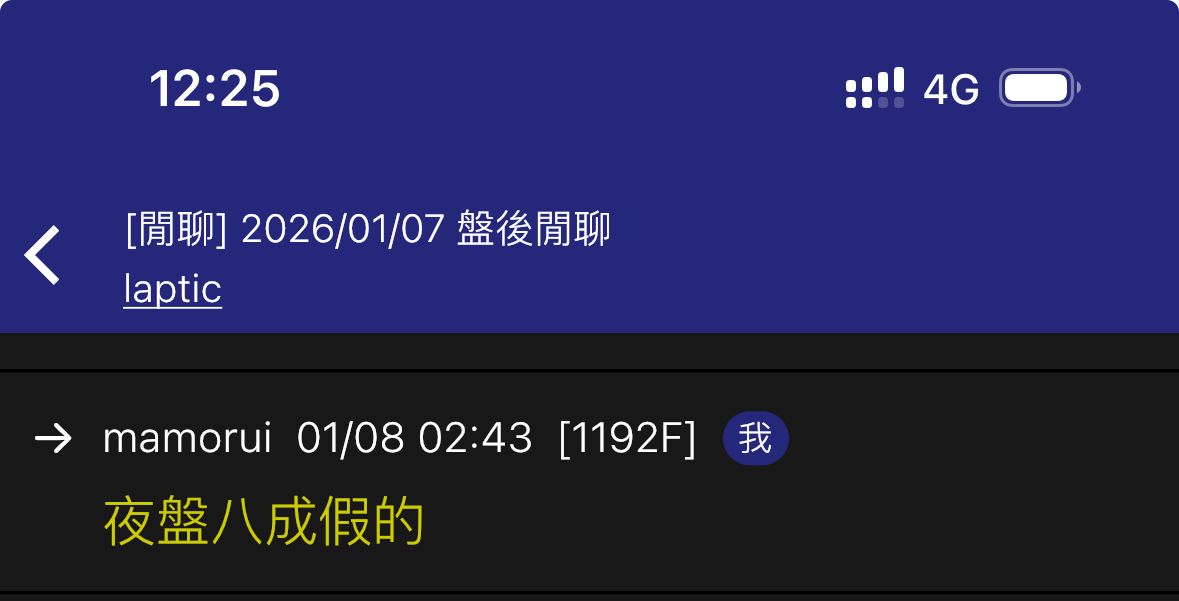 → pttstock : 丁排 我贊成追高 實際都在低接 cc 01/08 08:33