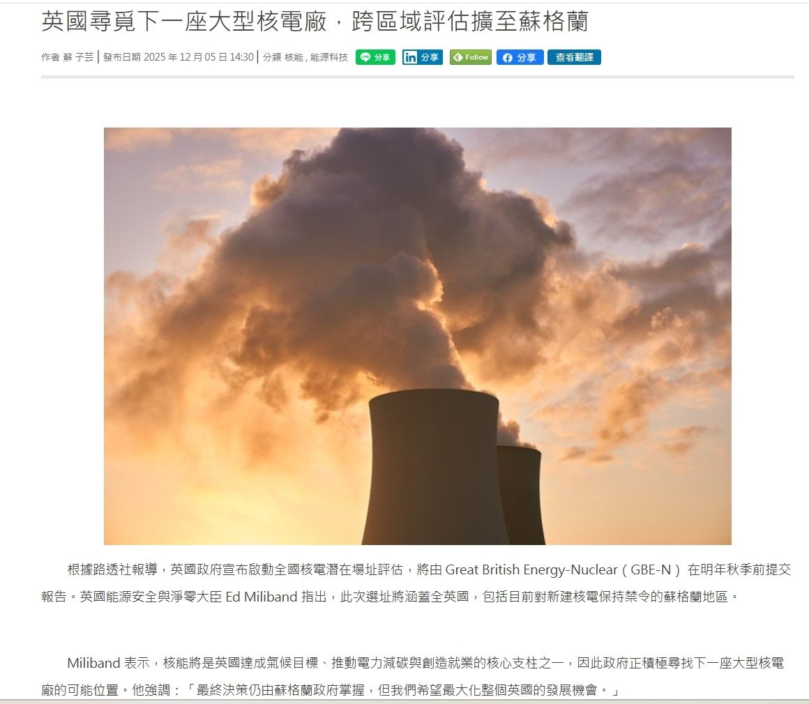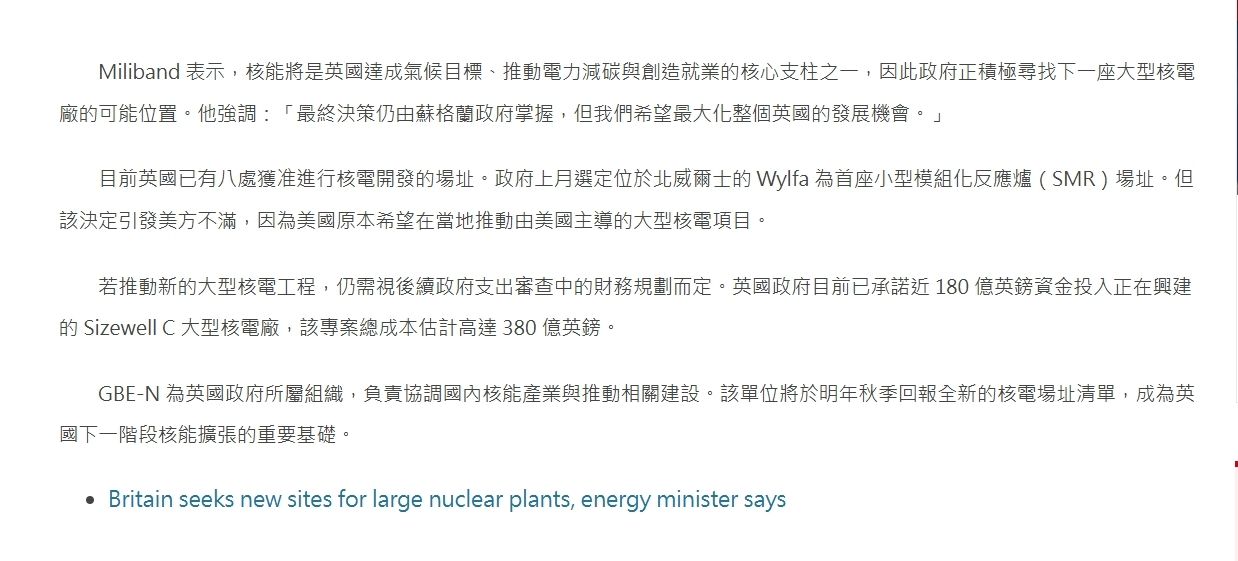 → coffee112 : 英國也說要讓核能跟用電比例提高 現在不做 以後來夢 01/13 16:20