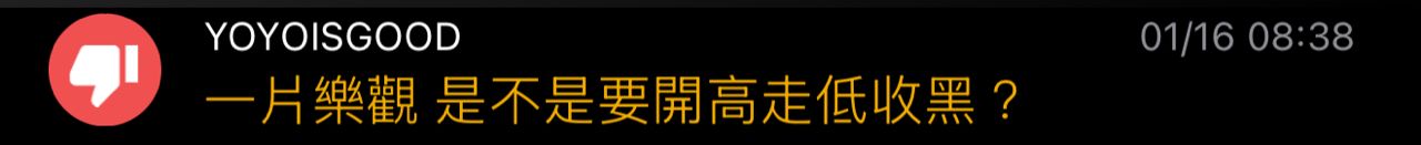 → allenbret : 利多出盡 開高走低收最低 散戶瘋狂進場 你還敢玩嗎 01/16 08:37