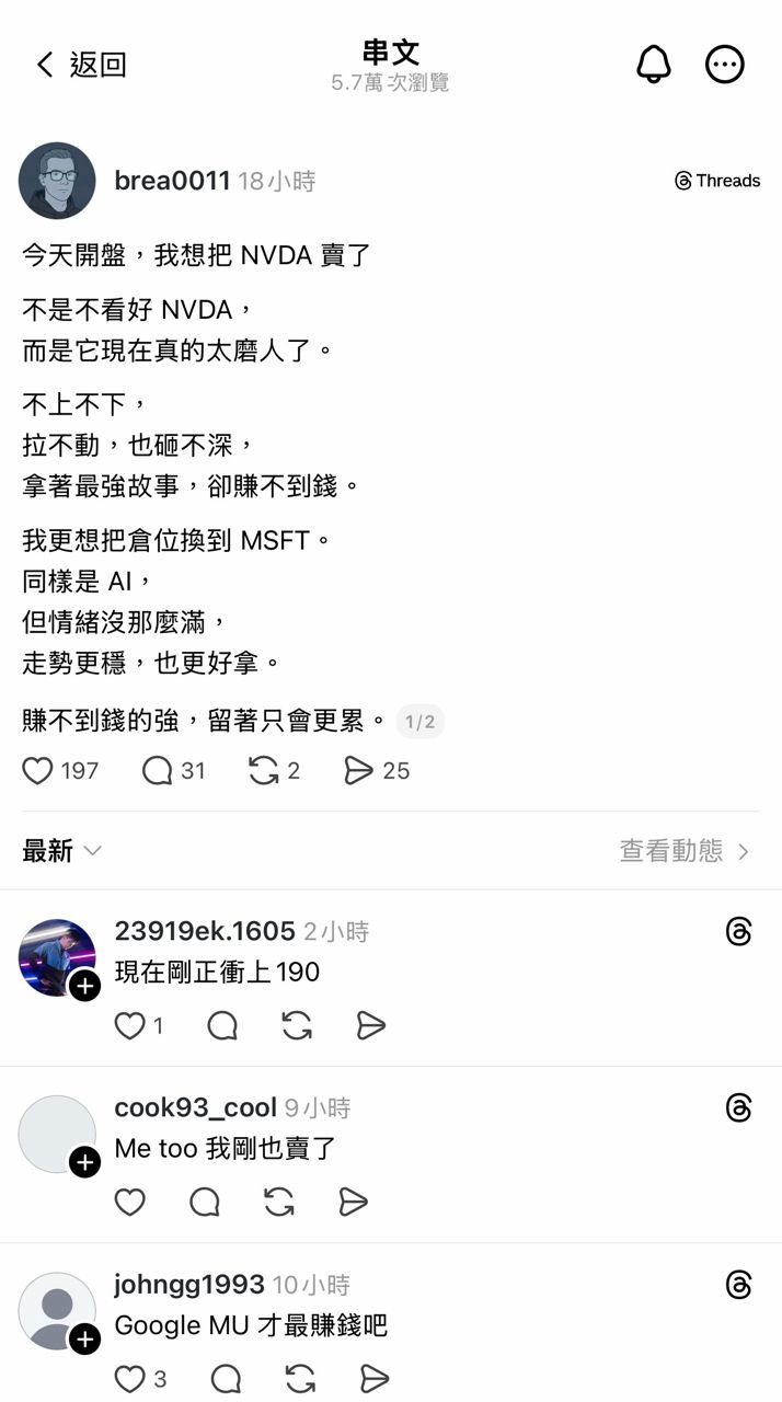 → kychen : TSM也噴 NV也噴 MU也噴 SNDK也噴 揪命~~~~ 01/28 14:05