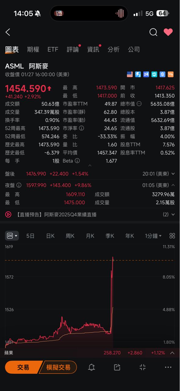 → rexwis : ASML大爆噴 01/28 14:02
