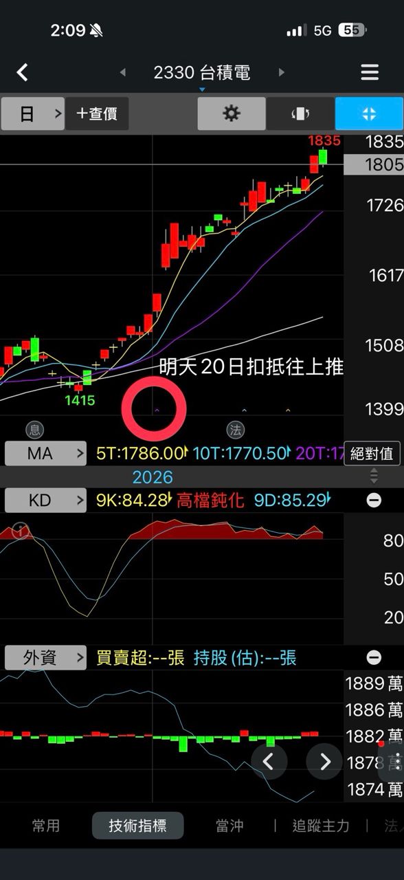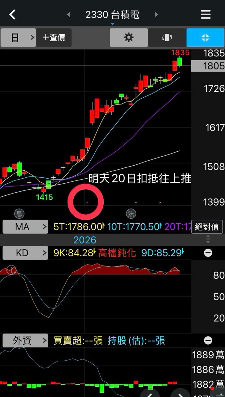 推 maimss : 台積電20日扣抵往上跑了 01/29 14:09