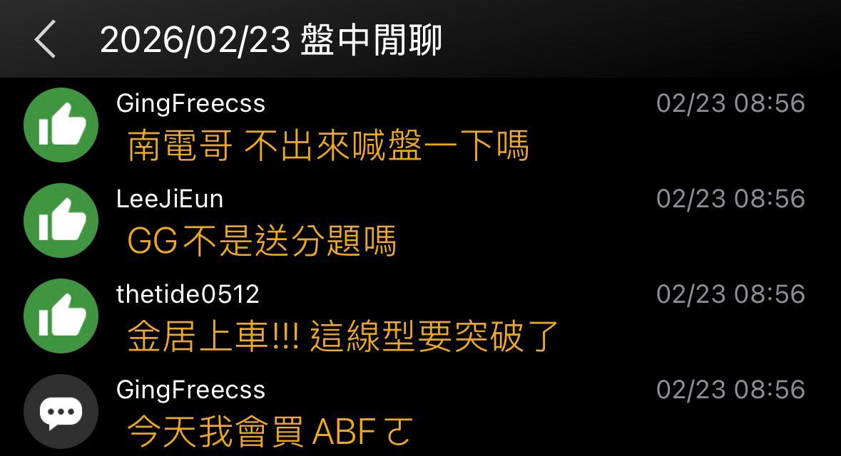→ GingFreecss : 你各位去看新春開盤到現在ABF多少錢 追高山頂蛙就 02/26 15:26