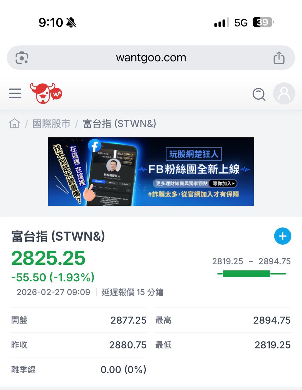 噓 HNCB2880 : 富台-2.5% 禮拜一開盤直接完蛋 02/27 10:05