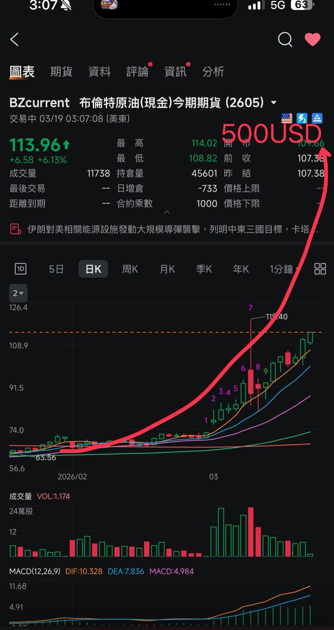推 kl0408 : Brent都快要把之前119.4的上引線吃光了 03/19 15:34