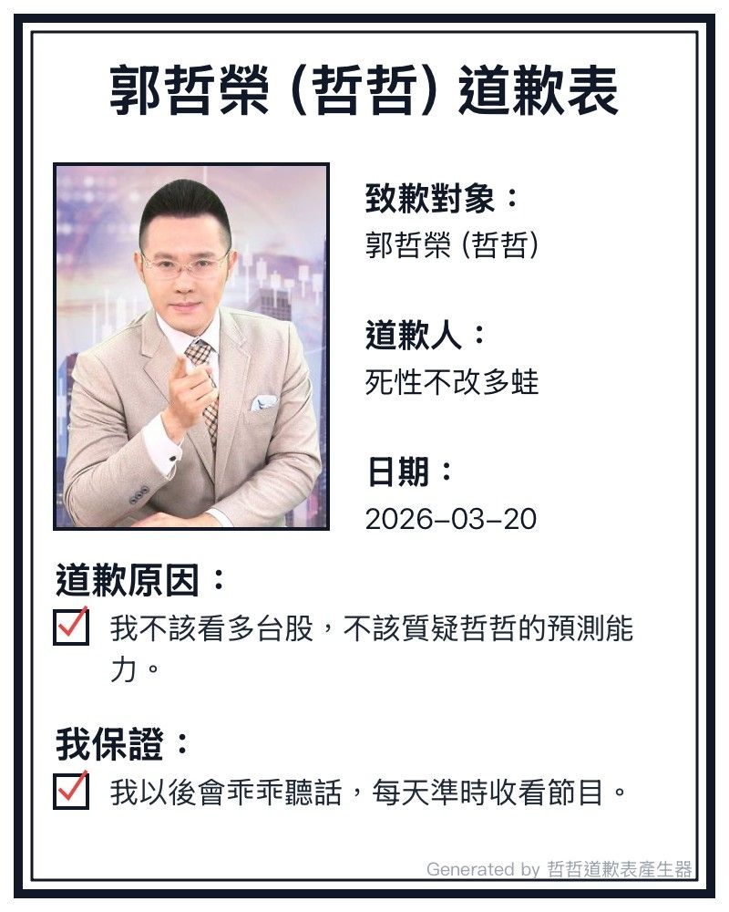 → benen : 哲哲說會-6000點 ☺ 把現金收好.股版壞人很多 03/31 08:33