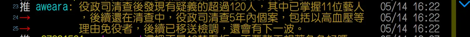 → chuag: 許光漢也拖到不能延乖乖去當替代役,林柏宏是早就當完 10/23 00:09