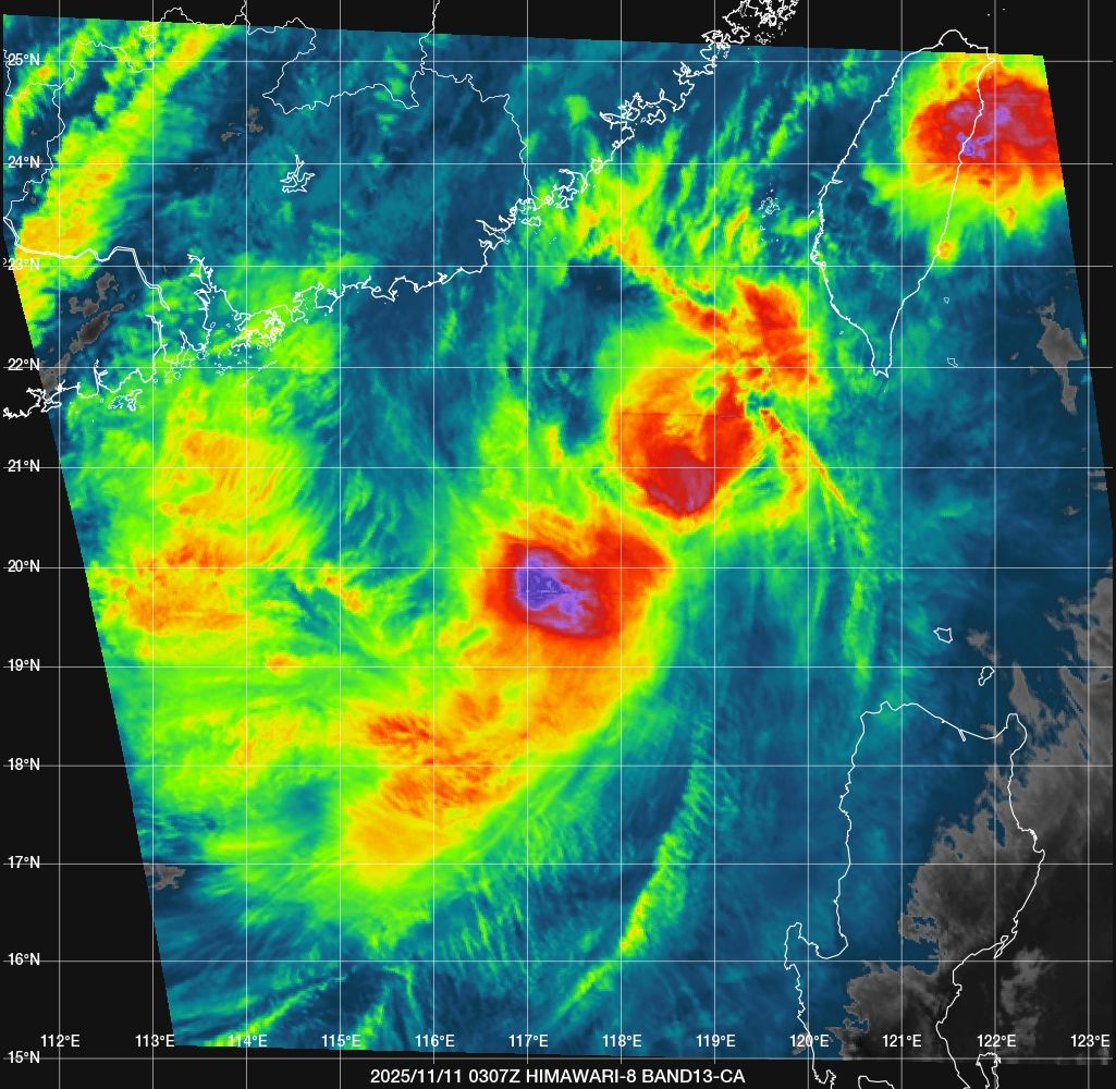 推 nottell : 已經看不出是颱風了 整坨散掉了 11/11 10:54
