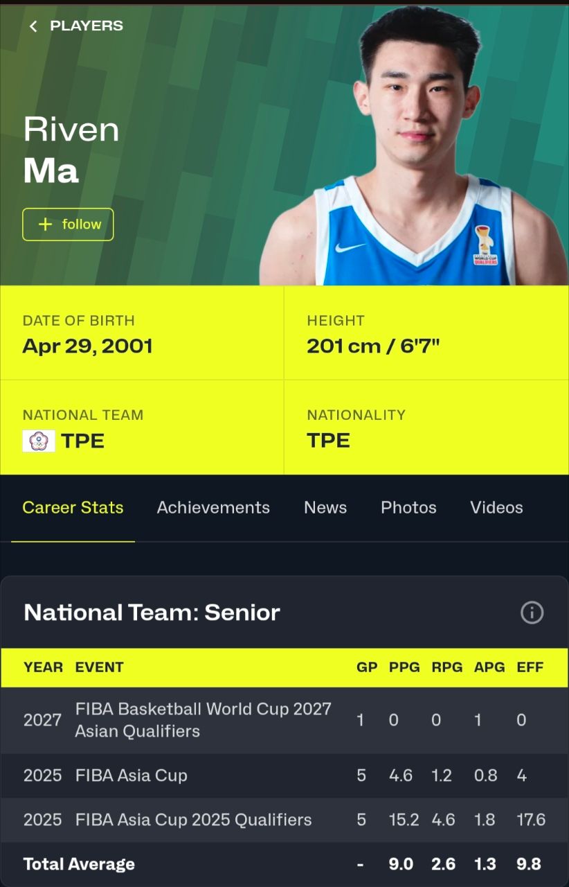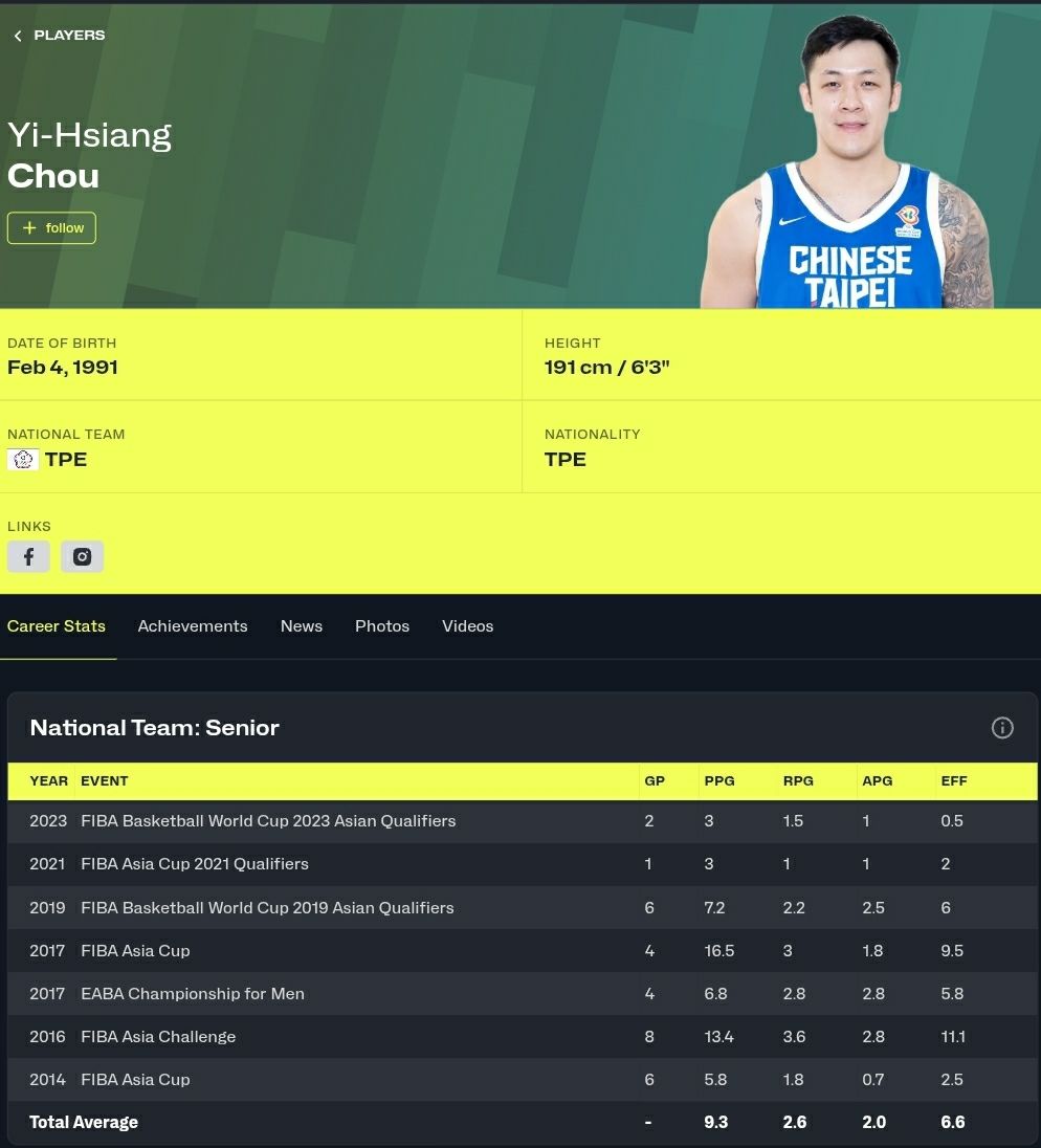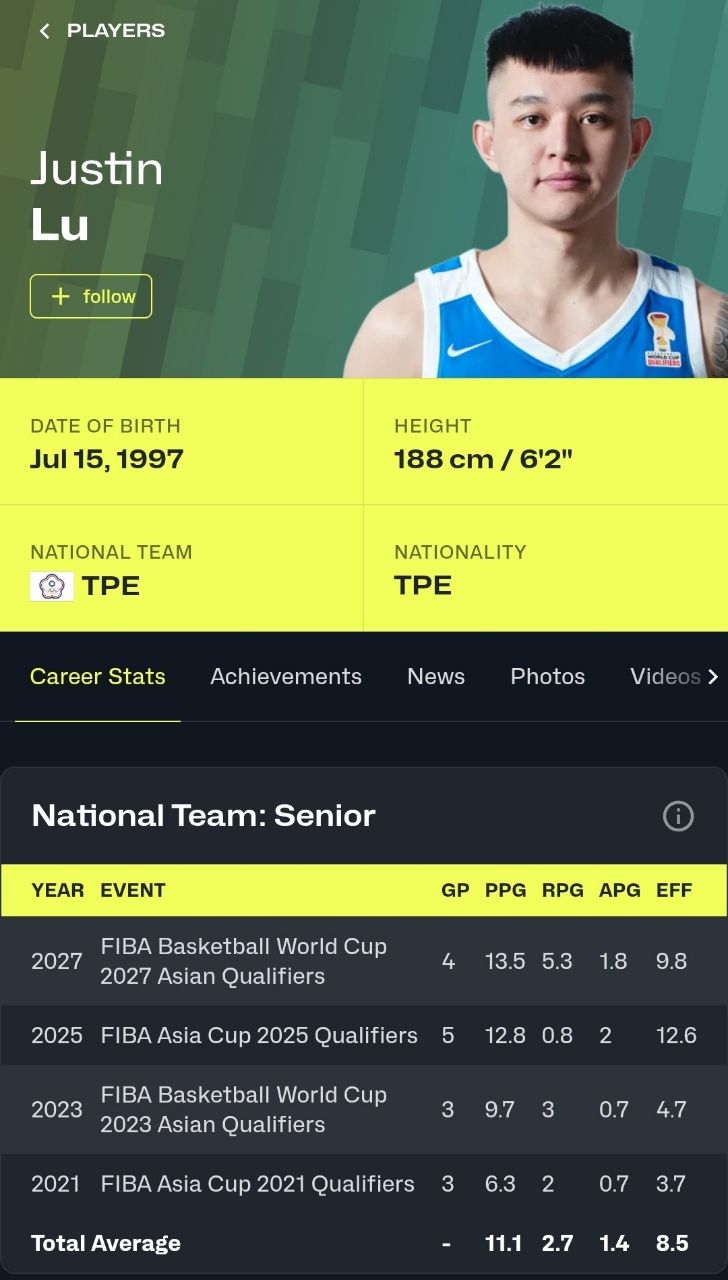 推 lb01833364 : 能在FIBA賽場上場均十分就已經是台籃歷史等級的 03/02 17:22